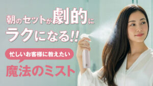 必要なら乾いた髪に180度のアイロンスルーかコテ巻きし、ドライヤーの冷風でクーリングする